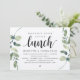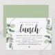 Cartão de convite temático Kraft com Eucalipto Verde Rústico Moderno, Letra Preta (com título do cartão: Brunch Felizes para Sempre). É perfeito para o seu almoço de casamento íntimo / festa de celebração pós-casamento. Adicione seus detalhes em letra / fonte preta correspondente.