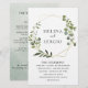 Cumprimente o seu casamento clássico com este programa de casamento de folhas de eucalipto verdes e geométricas. O design apresenta uma imagem geométrica dourada que enfeita folhas verdes de eucalipto.