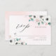 Mola aquática moderna Eucalyptus verde e anêmona floral em fundo cor-de-rosa pincelado, com roteiro de RSVP, elegante e na moda, cartão RSVP de excelente para casamento rústico, casamento botânico e casamento de praia. Ver todas as peças correspondentes na coleção
