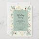 Morangos vermelhos, sábios e folhas de ouro rodeiam as informações da sua festa em cartazes chicos nestes convites para festas de Natal.