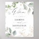 Bem-vindos aos seus convidados ao seu casamento ou evento facilmente e lindamente com o seu Eucalyptus Glow Dourado Greenery Sign Poster. Excelente para casamentos e festas.
