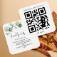 Eucalyptus deixa cartão RSVP do Site de Casamento de Código QR. A maneira mais rápida e moderna de receber seu RSVP de seus convidados. Adicione seu Código QR que direciona seus convidados para seu site de casamento dedicado para que eles possam responder facilmente ao seu convite.