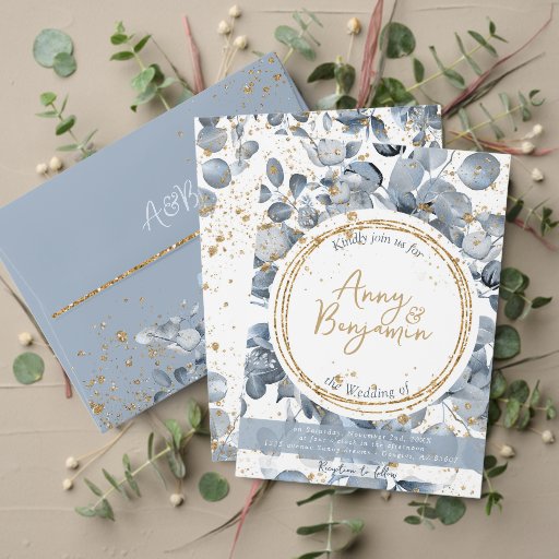 Eucalyptus Dourado Glitter - Convite Azul Dusty 2