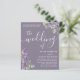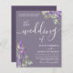 Este é um convite de casamento moderno e elegante do 'casamento de' caligrafia em branco sobre um fundo roxo empoeirado com a adição de eucalipto verde sábio e lavanda roxa. Fácil personalizar o texto para criar algo realmente exclusivo.