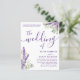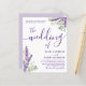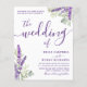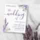 Este é um convite de casamento moderno e elegante para o 'casamento de' caligrafia em roxo, em fundo branco, com a adição de eucalipto verde sábio e lavanda roxa. Fácil personalizar o texto para criar algo realmente exclusivo.