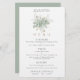 Eucalyptus Elegante Do Orçamento Deixa O Menu Verde Dourado. Um preço orçamentário de 5,5" x 8,5", em uma elegante estoque LINEN de 110 lb - para uma sensação de luxo pelo valor do excelente, isso é perfeito para menus, além de convites e programas, etc. Este alternativo de tamanho de orçamento também está disponível em outras opções de papel. O estoque do cartão SEMI-GLOSS de 110 lb tem aproximadamente a mesma espessura do cartão postal, portanto também funciona bem para convites. O papel FELT de 100 lbs é colorido por buff, NÃO branco, então adiciona um toque rústico. O estoque de papel MATTE de 80 lb é branco brilhante, para impressão nítida, excelente para seus menus e programas, enquanto o papel SATIN de 80 lb é fino e leve, ideal para gabinetes. NOTE QUE OS ENVELOPES OPCIONAIS SÃO UM POUCO MAIORES EM TAMANHO A 6,75" x 9" aprox. Este elegante buquê de folhagem de aquarela no topo Personaliza facilmente o texto. Um fundo verde de sábio coordenado está atrás. Você também pode alterar o estilo e as cores da fonte e as cores de fundo na frente e na parte traseira, se desejar, por meio da opção Clique para Personalizar mais.