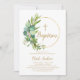 Barato de convites de batismo para bebês impressos. Este design bonito tem uma camada floral de aquarela com Eucalyptus. Personalize a design com os detalhes da festa Baptism do seu filho. O verso tem folhas verdes que você pode usar para adicionar texto e fotos adicionais. Clique em Personalizar para escolher qualquer cor de fundo e editar as fontes de texto e as cores para criar um convite exclusivo de Batismo para o seu bebê Boy.