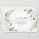 tema de casamento verde com folhagem de eucalipto e flores brancas de aquarela. O texto e as cores podem ser editados.