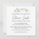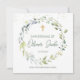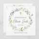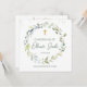 Este design apresenta uma ilustração de folhagem verde e folhas de eucalipto em estilo aquarela. Na parte superior da placa há uma imagem de confetti de efeito cruzado e ouro / esverdeado.