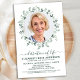 Funeral Moderno Eucalyptus Memorial / Celebração Do Convite À Vida. Estes convites para funeral de simpatia apresentam uma foto em um design de eucalipto verde. Personalize esta celebração do convite para o funeral de vida com as fotos, nomes e datas de seus entes queridos, detalhes do evento. COPYRIGHT © 2021 Judy Burrows, Black Dog Art - Todos Os Direitos Reservados. Eucalyptus Foto Comemoração Do Life Conite