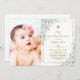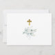 Barato de bebê estampado chamado "A Primeira Sagrada Comunhão". Este design bonito tem uma cor d'água, folhas verdes e moldura de ouro. Personalize o design com os detalhes do partido Primeira Comunhão do seu filho. O verso tem uma cruz dourada com folhas de eucalipto de aquarela ou usa o espaço para adicionar texto e fotos adicionais. Clique em Personalizar para escolher qualquer cor de fundo e editar as fontes e cores do texto para criar um único convite da Primeira Comunhão para a sua bebê