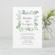 Este elegante convite de casamento apresenta uma fronteira quadrada de verde-luxuoso, eucalipto e flores para os nomes da noiva e do noivo. O design é acentuado com texto de estilo manuscrito.