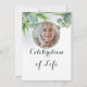 Um fundo eucalipto minimalista com cor verde-aquosa. O convite para o memorial do funeral Apresenta um quadro elegante para colocar a foto da sua amada pessoa com um estilo botânico e floral. A design também vem com fontes clássicas e caligrafia moderna para torná-la mais bonita. O convite pode ser facilmente personalizado e se você quiser mais personalizações ou recursos extras que você possa contactar, e eu terei o prazer de ajudá-lo.