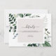 Eucalyptus Greenery Botanical Watercolor Spring Wedding Details Card em fundo branco - inclui uma bela e elegante tipografia com folhas botânicas modernas e verde para a celebração especial do dia do casamento.