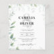 Apresentando a perfeita mistura da natureza e elegância, nosso Convite Zazzle para Casamento com Eucalyptus Leaves. Este convite amigável ao orçamento apresenta uma impressionante design botânica, mostrando uma luxuosa folhagem de verde, perfeita para uma celebração inspirada na natureza. No verso, um código Qr personalizado, código do website do casamento adiciona um toque de modernidade e conveniência, remover se não for necessário. É fornecido um amplo espaço para que você adicione detalhes adicionais e informações de RSVP. Abraçar a beleza do exterior com este belo convite. Escolha o seu hoje!
