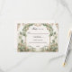 Reunir as respostas com graça usando esta elegante placa RSVP, projetada com eucalipto verde e um quadro floral inspirado em vintage. Este modelo editável inclui espaço para nomes de convidados, presença e opções de refeições, fazer-o como uma peça criteriosa e prática do seu conjunto de convites. Enquanto complementa perfeitamente as peças de coordenação da coleção Evelyn, sua design de eterno também a torna uma adorável opção independente para casamentos de jardim, clássicos ou inspirados na natureza.
