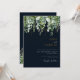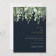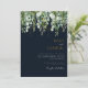Um elegante convite de casamento de arte nouveau perfeito para um sofisticado casamento boêmico. O marinho escuro e os tons verdes da floresta, com a caligrafia do eucalipto e samambaias, conjuram o romance e a magia das florestas encantadas.
