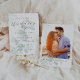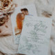 Apresentando um design verde eterno na frente e uma opção de foto personalizável no verso, este convite combina lindamente o encanto natural com um toque pessoal.