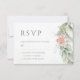Belos cartões de resposta de casamento com cor d'água floral rosa eucalipto e folhas de ouro.