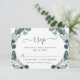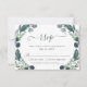 Cartões RSVP de casamento botânico elegantes com cor d'água rústica, folhas verdes e poeirentas de eucalipto azul e verde. As iniciais do monograma do casal estão no verso. Entre em contato com o designer por meio do Zazzle Chat ou makeitaboutyoustore@gmail.com se você quiser que este design seja modificado, em outro produto ou em itens de coordenação.