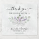 Essas lindas etiquetas de garrafas de licor são perfeitas para agradecer convidados especiais de casamento ou membros da sua festa noiva. O design de gema de bico rústico apresenta um aglomerado de folhagem de cor d'água pintada manualmente, incluindo ranhuras de folhas de eucalipto e flores de lavanda em tons de verde e roxo de sábio. No texto lê-se Obrigado por nos celebrar. Há espaço para seus nomes e a data do casamento, e o tipo de espíritos ou outros conteúdos da garrafa.