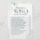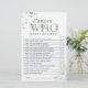 Este jogo de chá de fraldas "adivinhem quem mamãe ou pai" apresenta cores aquáticas pintadas de eucalipto e folhas verdes com letras botânicas de ouro. Para uma personalização mais avançada deste design, clique no BOTÃO FERRAMENTA DESIGN AZUL. Itens correspondentes também estão disponíveis.