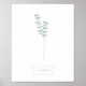 Poster com motivo de eucalipto que tem um belo efeito de aquarela. Por baixo há um texto manuscrito que diz Eukalyptus, que significa eucalipto em sueco.