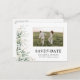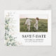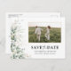 Eucalyptus Salve A Data Com Cartão-Postal Fotográfico. Este na moda e elegante salve a data do cartão postal apresenta uma linda aquarela pintada manualmente Eucalyptus Leaf Greenery. Localize itens correspondentes na Coleção de Gerência Eucalyptus Folha de Watercolor.