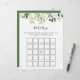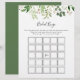 Este simples jogo de bingo floral floral de eucalipto é perfeito para um chá de casamento moderno. A design apresenta lindas folhas verdes de eucalipto pintadas artesanalmente, dispostas em formas geométricas, inspirando beleza natural.