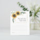Orçamento Sunflower Eucalyptus Floral, cartões noturnos de casamento. Crie um cartão noturno de data de Chá de panela de girassol moderno, com este modelo giro com um belo buquê floral rústico com uma tipografia simples moderna. DICA: Cartões de suíte de casamento iguais, como RSVP, programas de casamento, banners, tapeçarias, etiquetas de presentes, placas e outras pegadas de casamento e guloseimas estão disponíveis na coleção abaixo com esta design.