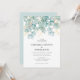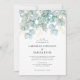 Este convite para o casamento apresenta um belo gráfico de aquarela com cor azul clara de eucalipto acentuado com botânica dourada.