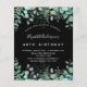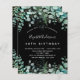 Um convite de tendência para um tema de 40ª (ou qualquer idade) festa de aniversário, encantado da floresta. Um fundo preto com samambaias e eucalipto verde. O nome é escrito com um moderno estilo escrito à mão. Personalize e adicione os detalhes da sua festa.