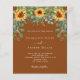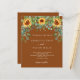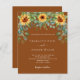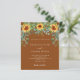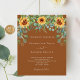 Um fundo castanho-da-toca decorado com girassóis, eucalipto verde. Personalize e adicione seus nomes e detalhes da festa. 1 folha = 1 convite impresso de borda a borda.
