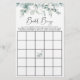 Folha de chá de bingo de noiva elegante com aquarelas verdes em sábado eucalipto verde e "bingo de noiva" em um roteiro de na moda. Personalize as instruções do jogo e adicione o nome da noiva e a data do chá no verso.