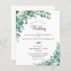 Convites de casamento botânico modernos e elegantes impressos em papel leve, ideais para orçamentos conservadores e/ou entrega manual a hóspedes com eucalipto verde e cinza de carvão suave. Entre em contato com o designer por meio do Zazzle Chat ou makeitaboutyoustore@gmail.com se você quiser que este design seja modificado, em outro produto ou em itens de coordenação.