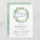 Os Elegantes convites de primeira comunhão botânico apresentam uma coroa de folhas e folhagem de cor aquática, cercando a "Primeira Comunhão" em letra chic manuscrita. Personalize com a cerimônia religiosa e a celebração ou detalhes do partido abaixo.