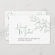 Simples silêncio cinza galinha verde linha de arte botânica com RSVP e opções de refeição em papel branco com arte verde e texto verde e preto. Design simples de folha. Estão disponíveis convites correspondentes e outros itens correspondentes e opções de cor. © Original folha desenhando linha e design por Sarah Trett para www.mylittleedenweddings.com no Zazzle.