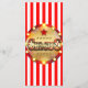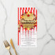 Cartão de Menu Listrado de Vermelho Branco e Dourado de Evento de Festa de Circo. Itens correspondentes neste design estão disponíveis.