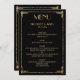 Excelente de folhas douradas Menu de casamento Gatsby Art Deco com texto personalizável impresso em fundo preto
