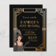 Convite de aniversário de arte de 1920 preto e ouro. Veja nossos cartões de resposta e recepção correspondentes.