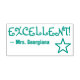 Este design de carimbo inspiracional apresenta a mensagem positiva "EXCELENTE!" e um nome de tutor personalizado. Ele poderia ser usado por um professor, educador, ou tutor ao marcar tarefas, para reconhecer que o aluno fez um trabalho de excelente.