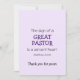 Este é um CARTÕES DE AGRADECIMENTOS simples e moderno com uma mensagem inspiracional baseada no verso das Escrituras de Bíblia de Matthew 20:26, que diz O SINAL DE UM EXCELENTE PASTOR É UM CORAÇÃO DE SERVIDOR, com texto adicional na parte inferior que diz OBRIGADO POR VOCÊ. O texto para o PASTOR do EXCELENTE e a mensagem OBRIGADO POR VOCÊ são PERSONALIZÁVEIS, para que você possa alterar a função (por exemplo, PRIEST, VICAR, BISHOP, etc.) e a saudação/nome, conforme necessário. A mensagem inversa também é personalizável, para que você possa editar ou excluir e adicionar sua própria mensagem pessoal. Isso faria um cartão de saudação PASTOR excelente para seu pastor favorito, seja no Natal, Páscoa ou para qualquer ocasião especial para dizer Obrigado. Parte da coleção PASTOR APPRECIATION de Designs Bereanos. #thankateacher #professor apreciação #zazzle