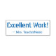 Este design de carimbo motivador apresenta a mensagem positiva "Excelente Trabalho!" e o nome de um professor ou educador personalizado. Ele poderia ser usado por um professor, educador ou orientador ao marcar trabalhos, para indicar que um aluno fez bem.