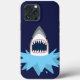 Um desenho bonito de um tubarão branco excelente saltando das ondas com suas mandíbulas dentadas bem abertas.