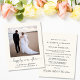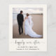 Simples elopeia leve e econômica ou anúncio de casamento menor e recepção de casamento postada ou convite de festas. A frente apresenta sua fotografia, "feliz para sempre", escrita em um roteiro de tendências com sucos e seus primeiros nomes e data e local do casamento. No verso, você pode personalizar seu anúncio de casamento em mais detalhes, adicionar uma recepção ou convite de festas e assinar seus nomes casados em um roteiro semelhante a assinatura.