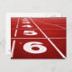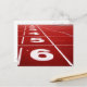Cartão postal com uma fotografia da linha de início com números numa faixa em execução. Personalizável.