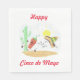 Os guardanapos de papel perfeitos para sua festa Cinco de Mayo com pimenta habanero correndo e as palavras "Feliz Cinco de Mayo" escritas em letras vermelhas. © ArianeC Ilustrações