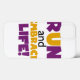 Se você gosta de correr, correr 5Ks, 10Ks, meia maratona, ou maratonas, você vai adorar este design de texto colorido em roxo e amarelo que lê Run and Embrace Life! Correr e Embarcar T-shirts, capuzes, ímanes, capas e capas de dispositivos eletrônicos, capas de iphone, botões, cartões, adesivos, correntes-chave e muitos outros itens para os corredores que adoram um brilhante e colorido design de corrida!