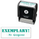 Este design de carimbo motivador apresenta a mensagem inspiradora "EXEMPLARY!" e o nome de um educador personalizado. Ele poderia ser usado por um professor, educador, ou tutor ao marcar tarefas, para reconhecer que um aluno fez bem.