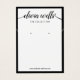 suporte para exibição de brinco e colar em combinação de na moda com tipografia de borda preta e script de assinatura.